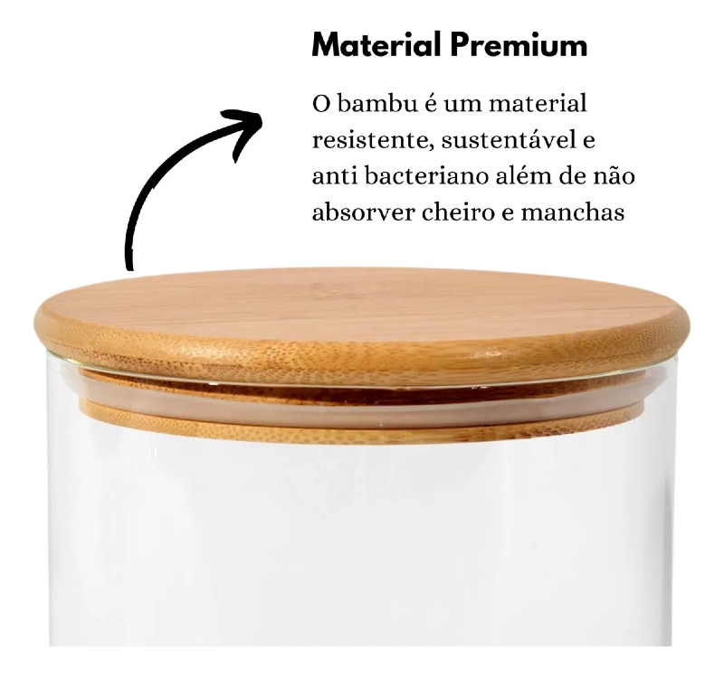 - 3 potes de vidro (300ml, 450ml, 600ml)