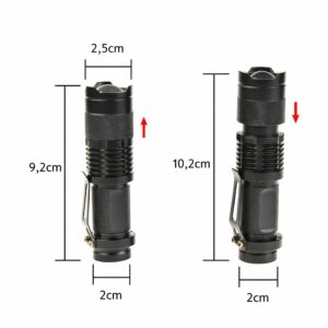 A lanterna funciona com pilhas AA ou bateria Litium recarregável 14500 6800 mah 3,7 v, e conta com a versatilidade do zoom, permitindo ajustar a intensidade da luz conforme sua necessidade. Embora não seja recarregável nem à prova d’água, sua praticidade e eficiência a tornam uma escolha ideal para aqueles que buscam uma fonte de luz confiável em suas atividades ao ar livre.