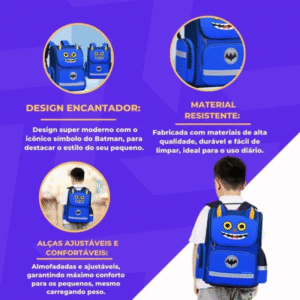Com um peso de apenas 536 g, a mochila é leve, permitindo que as crianças a carreguem sem esforço. A proteção lombar oferece um suporte extra, garantindo que os pequenos estejam confortáveis ao longo do dia. Se seu filho é fã do Batman, essa mochila é a adição perfeita ao seu dia a dia escolar.